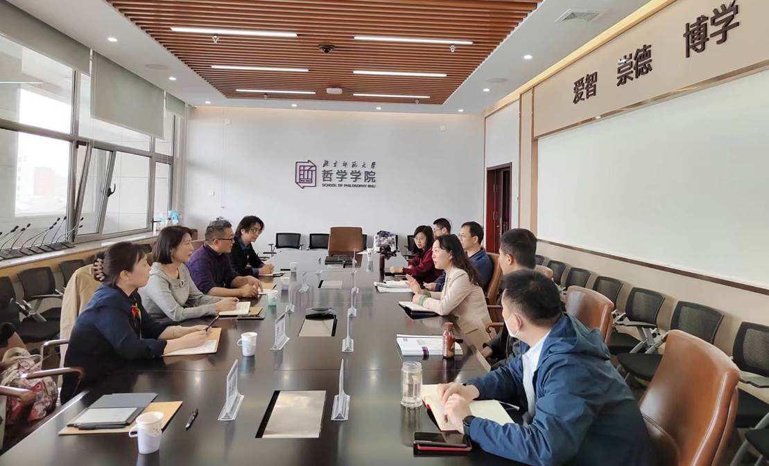 4月15日上午,到北京师范大学哲学院开展调研交流活动,双方就学科建设、师资队伍、学术刊物、人才培养、课程建设、学生工作等进行了深入交流。