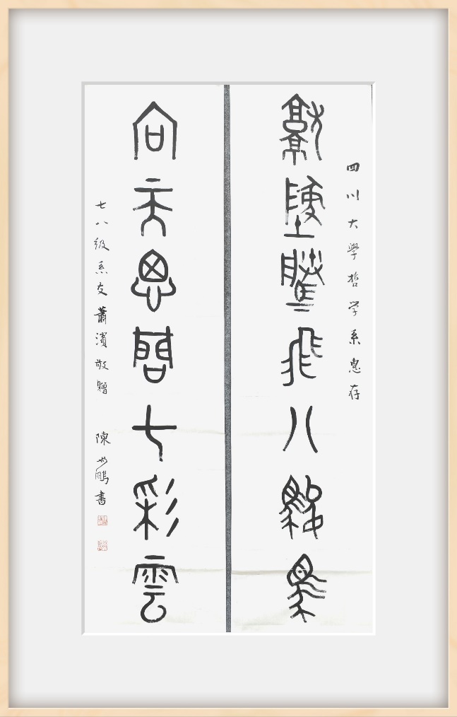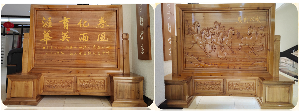 肖滨作为系友代表深切感怀母校的培养,赠送“向天思问七彩云,就地腾飞八骏马”,与系友们赠送的屏风相呼应,表达了对哲学系的美好祝愿。