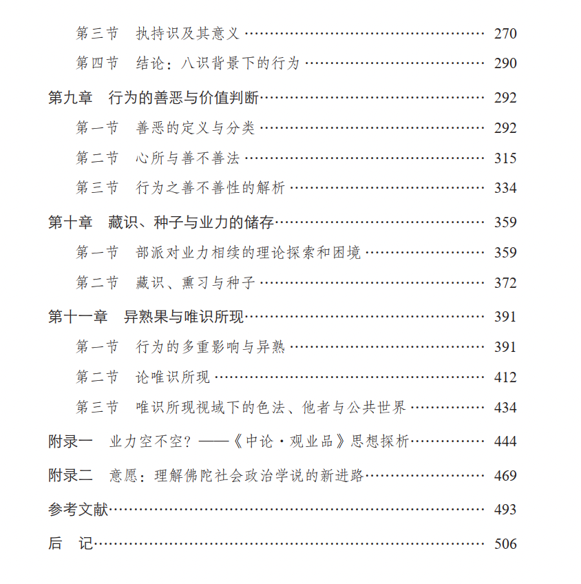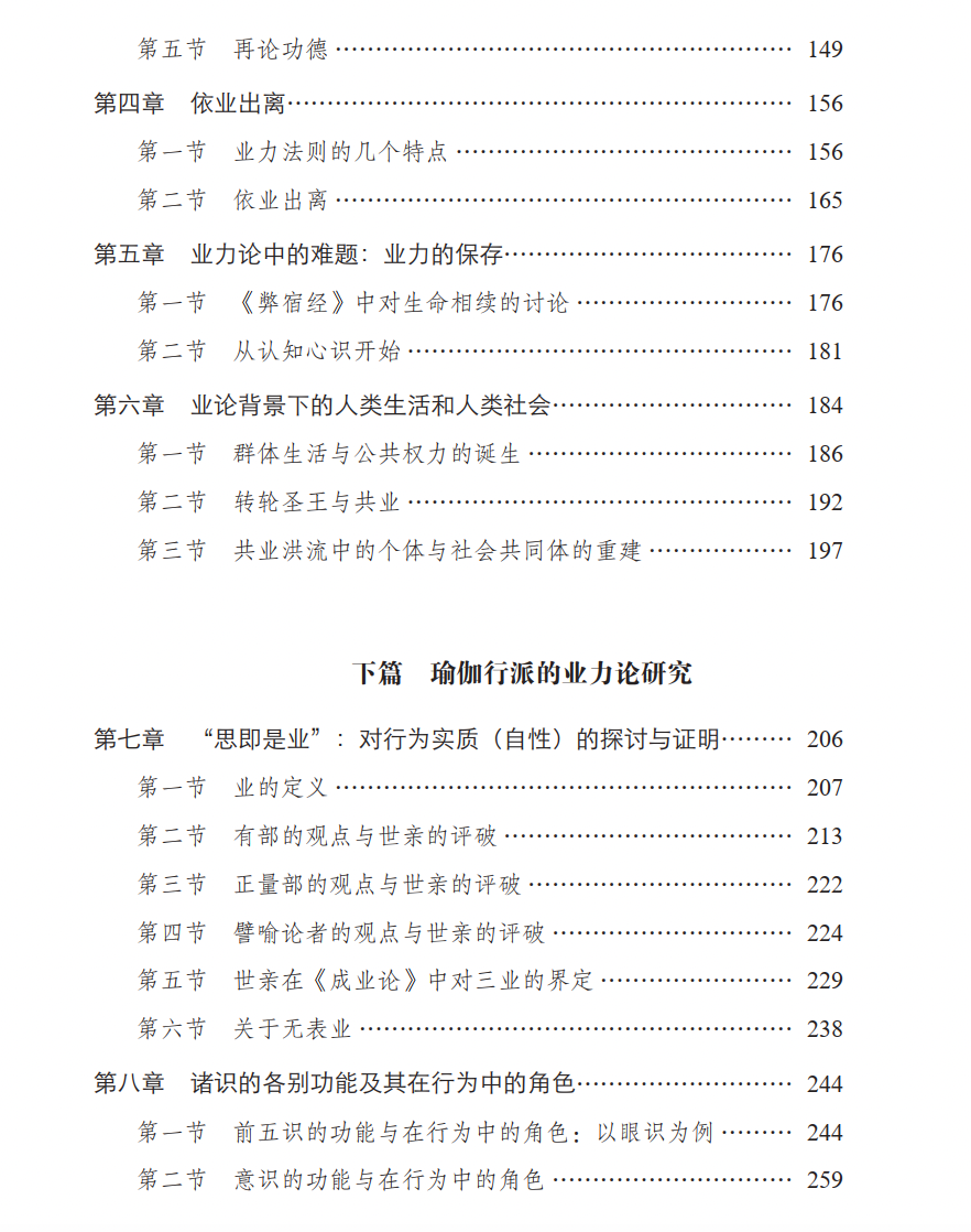 大约十余年前,我在为一些社会生活现象所困惑,尝试面对并思考那些非常基本的人生伦理问题。当时我的工作重点从中国哲学教研室转到了伦理学教研室,于是就设计了一门佛家伦理相关的课程,编选了一本阅读资料《佛家伦理基础读本》,是从汉译四部《阿含经》中选取的篇章,个别参考了南传的翻译。在精读某些篇章的时候,我惊奇的发现,素来被认为难解的业力思想,在这些经典中隐藏着破解的“密码”。比如是否有现世报的问题,在《波罗牢经》和《阿阇世王问现世因果经》(即《增壹阿含经》卷第三十九<马血天子品第四十三之二>第七经,此名为笔者所加。本经的异译是《长阿含·沙门果经》)中,经佛陀引导之后,二人得出的结论居然是完全相反的。之所以如此,在于两个人的个性气质、生活经验、判断能力等都是大相径庭的,佛陀只是将其隐而未发的观念显明化,然后给出进一步的指导。尽管两种说法对当事人来看都是最适切的,但深浅和方向却是明显不同的。显然,阿阇世王之所见更接近真实。《分别大业经》就更为有趣,首先列举了沙门、梵志基于其超能力所见的四种现象,接着举出沙门、梵志各自对此四种现象的解读和态度,佛陀对之一一进行了评点。现代人读这类经典很容易困惑于沙门、梵志的超能力和其所见前生后世的现象,因为这毕竟超乎绝大多数的人类经验。其实这种困扰对古人和今人是一样的,现代人由于不再接受轮回为真而困惑,古人则由于接受轮回为真而不再思考其中蕴含的更深的道理。因此,关键不是去讨论沙门、梵志所见这四种经验的可靠性,而是去理解他们的解读和佛陀的评点。这四种经验无非聚焦于德福关系,而这未必要付诸来世,在人类寿命大大延长的今天,完全可以替换为年轻时的善恶行为和老年时幸福度之间的关系。这么替换之后,来自于是否有超能力和个体经验不足的困惑被解除了,真正的问题才暴露出来。那么这个问题就和前面两部经所要处理的问题相当一致了。(以上具体参见本书第三章) 这些问题最终是要落实到如何理解行为(业),其不共他法的本质属性是什么。以此为前提,才有第二序的善恶判断问题以及德福是否一致,业力如何储存等等。而异熟果的被动性以及业力论自带的批判精神也是在对行为的深入探讨中出场的。以理解行为为入口,进而探究身心关系、心识问题乃至瑜伽行派的核心理论唯识所现,这些晦涩的问题似乎一下子亲切起来。“我说业是思”,看似揭示的就是每个人每时每刻在经验的生命事实,但在被佛陀揭示之前,那么多的问题都混乱不堪,而一经揭示,天地顿然清朗起来。对于一个研究者来说,一旦意识到这一点的重要性,那些艰涩的问题瞬间有一解千从之感。这是书名中第一个字“思”的来源。