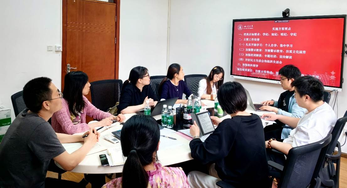 2024年4月16日下午,哲学系与宗教所党总支在文科楼205会议室召开党纪学习教育动员部署会,党总支委员、专职组织员、支部书记和支部委员等参加会议,会议由史冰川书记主持。