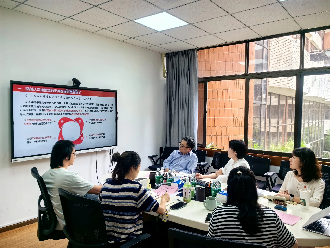2024年6月4日下午,哲学系与宗教所党总支理论学习中心组暨党纪学习教育专题学习会在文科楼205会议室开展,全体领导班子成员参加学习,学工部黄菲娅副部长列席参加,学习会议由史冰川书记主持。